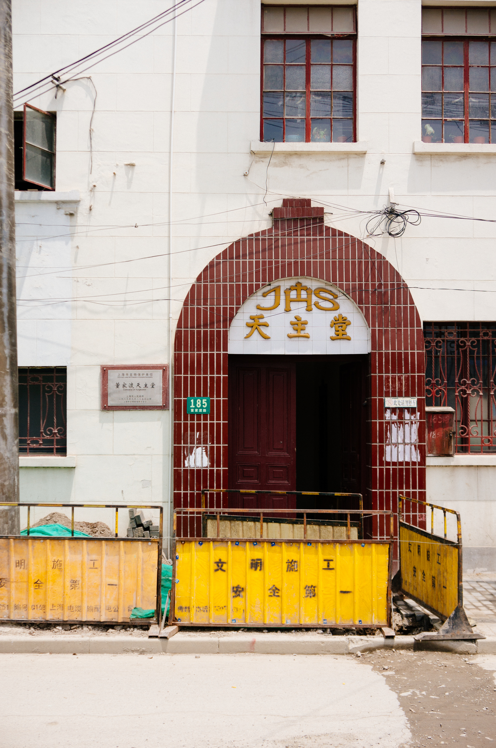 This photo was taken when the neighbourhood was going through a modernisation reconstruction. Old houses were mostly demolished and the land rebuilt into office buildings and skyscrapers. The church however, managed to survive this grand scheme citing historical and cultural reasons. However, a renovation was still warranted and perhaps long overdue. During the Cultural Revolution, the church was severaly damaged being used as a factory warehouse.